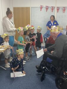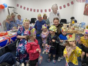 What a fantastic few days we had celebrating the Queens Jubilee party with many of our clients over the bank holiday. We had a big turnout of clients and carers who enjoyed an afternoon of afternoon tea, home bakes and entertainment. We had a lovely surprise visit from children from the Nursery nearby who had spent time making crowns and exchanging jubilee pictures for goody bags.It was so nice to see the young and old celebrating together.All our clients dressed up for the occasion and looked so smart. One lady (93 ) wore her mothers tiara from her wedding day.