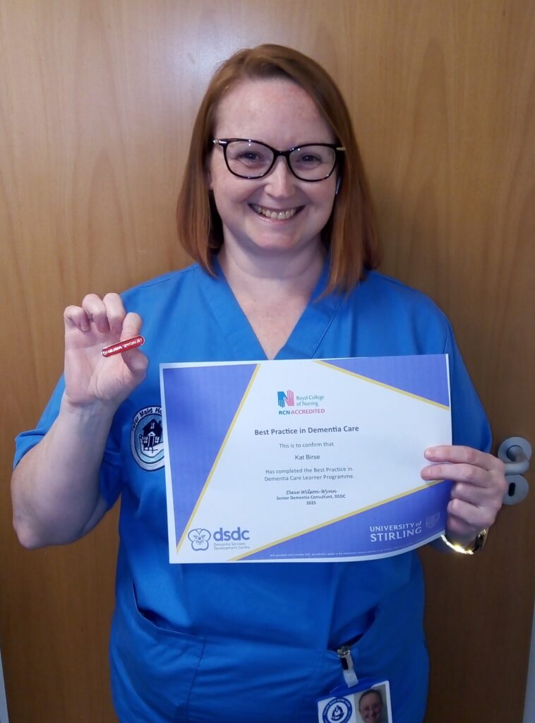 Below: One of our Care Practitioners receiving her certificate for Best Practice in Dementia Care.